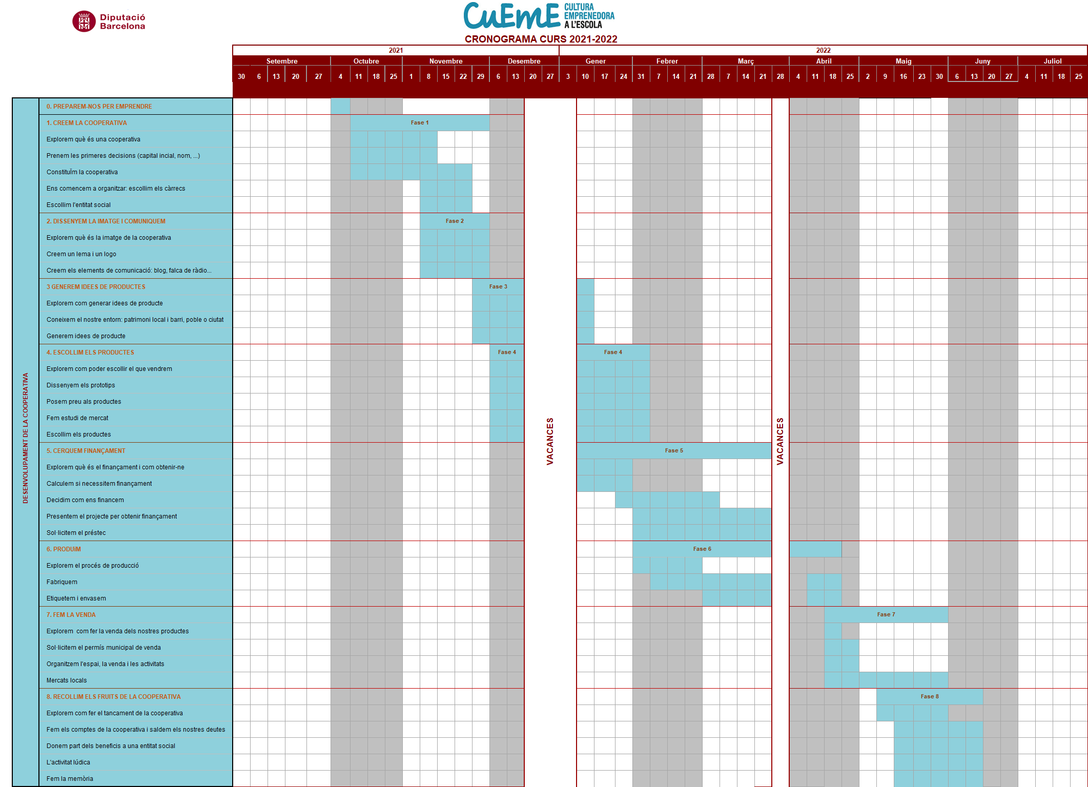 Aquest és el calendari previst del projecte. Hi podeu veure com repartir les tasques al llarg del curs: