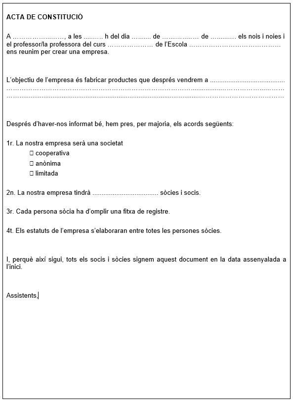Aquí en teniu un model que us servirà de base. Hi podeu afegir més articles, si cal, o eliminar-ne algun.